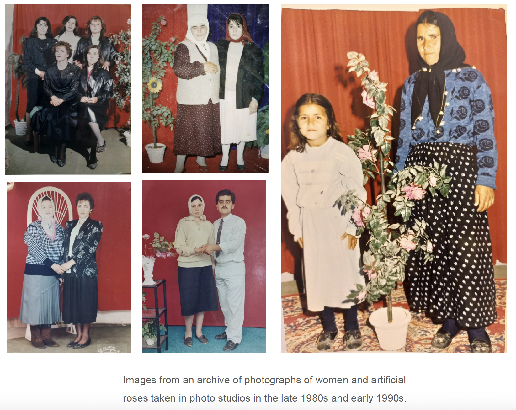 The exhibition draws on an archive of photographs depicting women and artificial roses together in photography studios across Turkey in the late 1980s and early 1990s. In these photographs of Hatice from Mersin, Bahar, Nilgün and Nurten from Giresun, Rahime from Kars and Müzeyyen from Kayseri nature is reduced to an artificial rose, into a visual representation that draws attention to the economy of representation in which women and non-humans play the leading role.